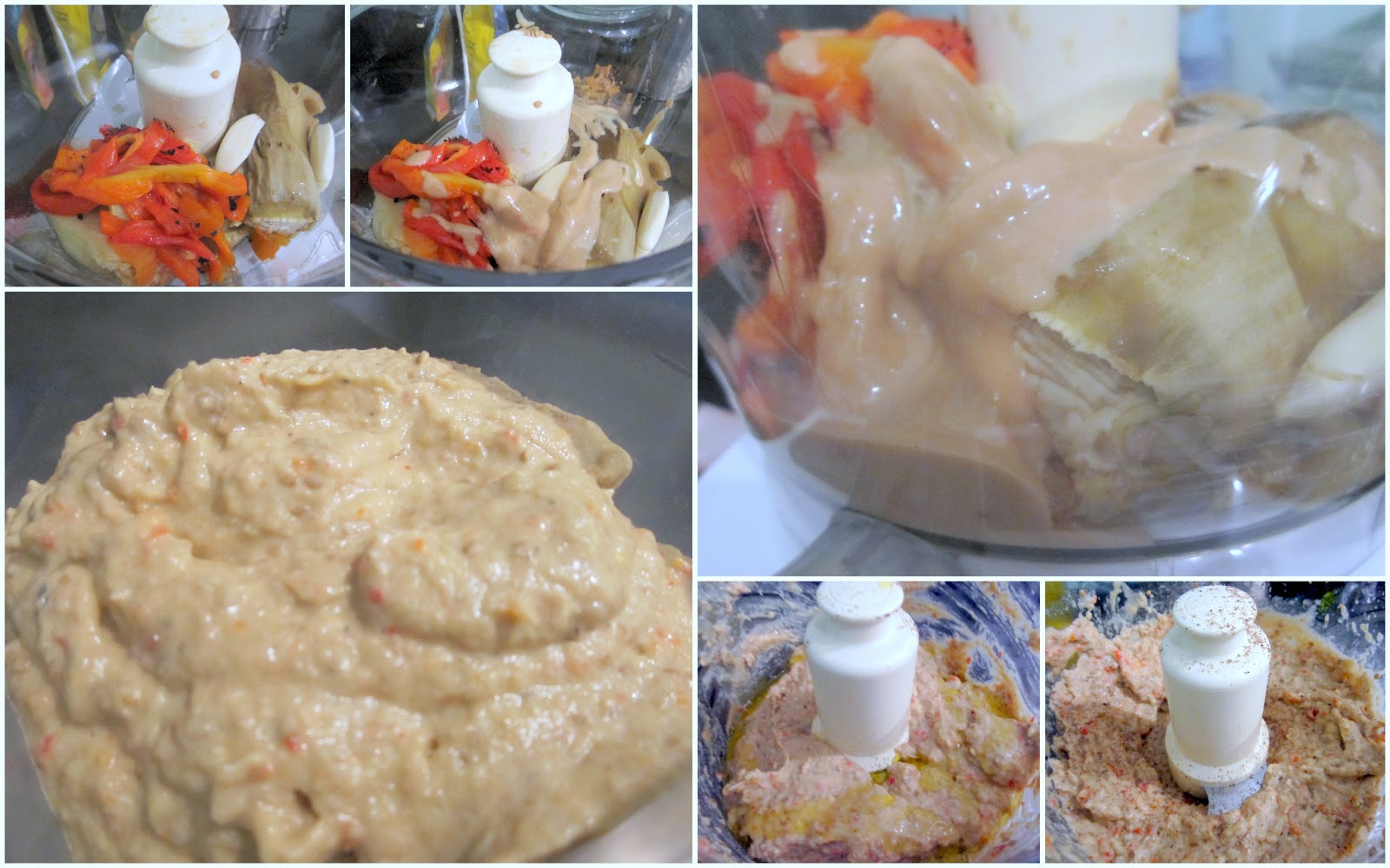 processor, add eggplant, roasted red peppers, tahini, garlic, lemon juice,